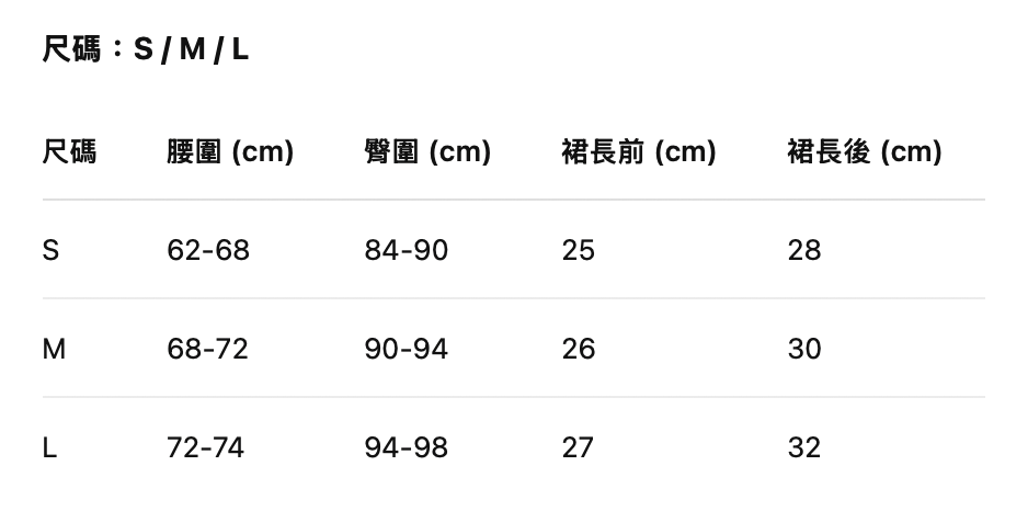 尺寸可能因布料彈性與測量方式不同而有1-2cm誤差,但不影響整體版型,請安心選購。
