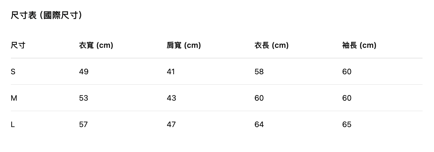尺寸:S / M / L